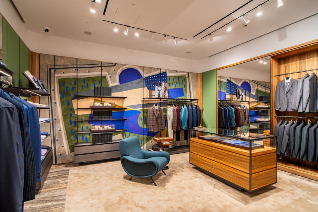 The boutique is designed to reflect Brioni’s global ethos through its elegant interiors, which harmonise sophistication and comfort. The space is curated with Italian furnishings, including a vintage Carlo Roma coffee table and artisanal carpets.