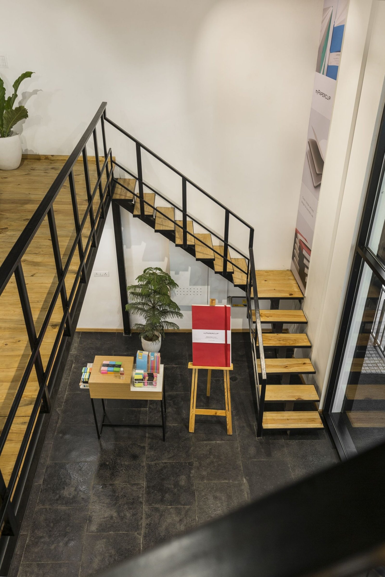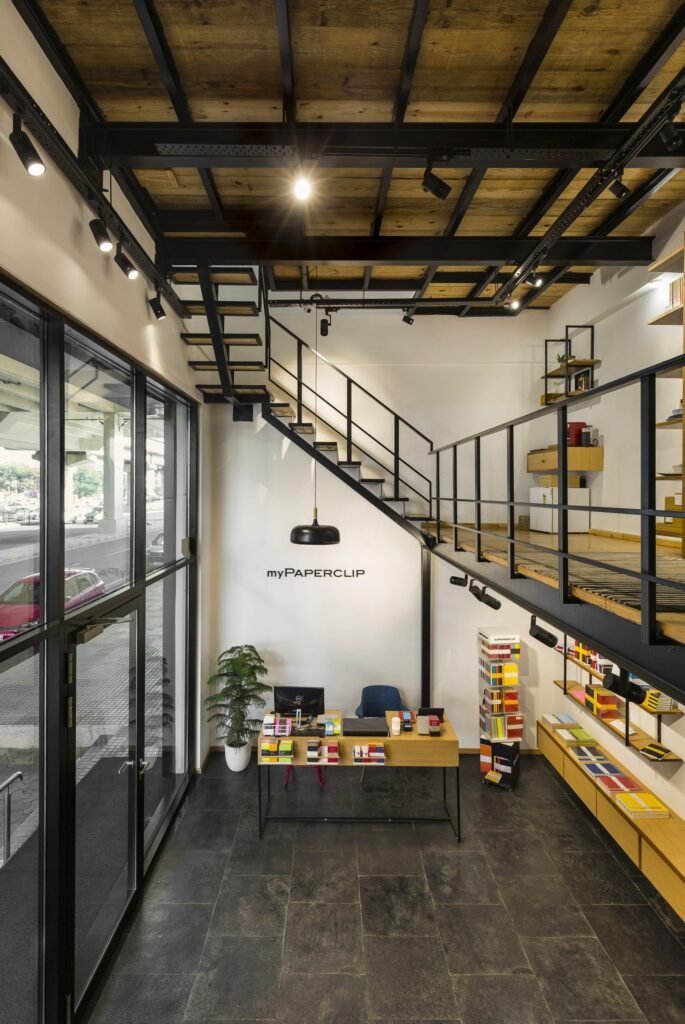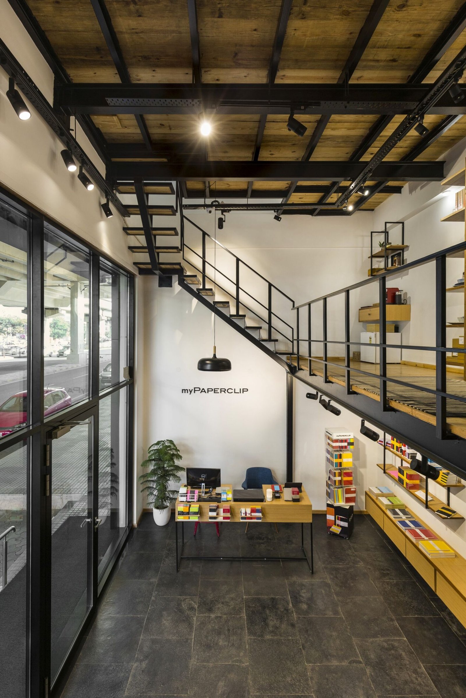 Located on Golf Course Road, Gurgaon, myPaperclip was conceived as an experiential flagship store, a space to experience the products and explore the opportunities of their corporate clients with an office. The biggest challenge with the project was 22ft X 16ft X 30ft site, to tackle which the planning of the space has been done volumetrically to create an extraordinary experience.
